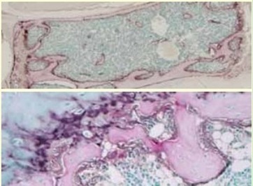 图5. 脱钙石蜡包埋切片的TRAP/ALP双重染色
