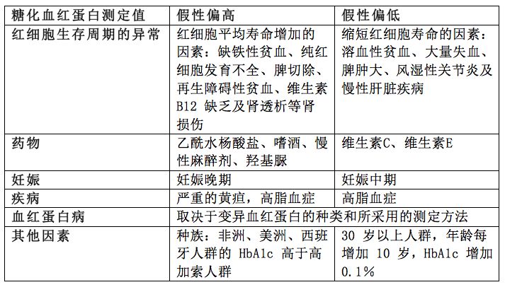 实验室应知晓 HbA1c 测定存在的干扰因素, 某些患者人群可能需要用某种特异的 HbA1c 测定方法或不适宜采用 HbA1c 来反映体内平均血糖水平。