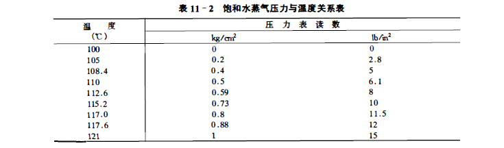 (1)高压蒸气灭菌在高压蒸气灭菌器中进行,利用提高蒸气压力而使温度增高的作用,因而提高了蒸气灭菌效力。蒸气压力和温度关系见表11-2。