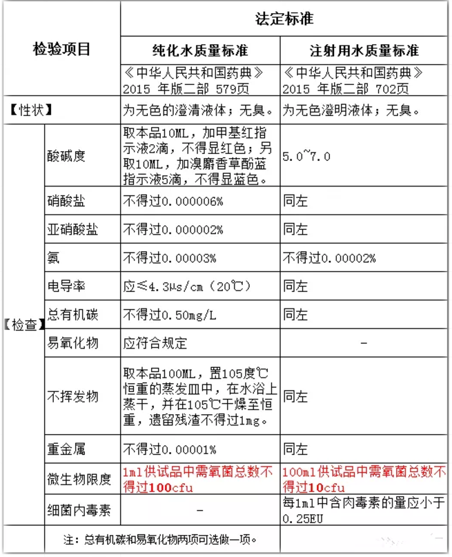 纯化水和注射用水的相关详细法规标准如下: