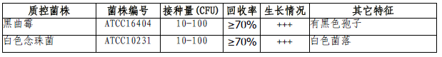 按标签用法制备培养基,接种以下质控菌株,放置25-28℃需氧培养72-120小时。