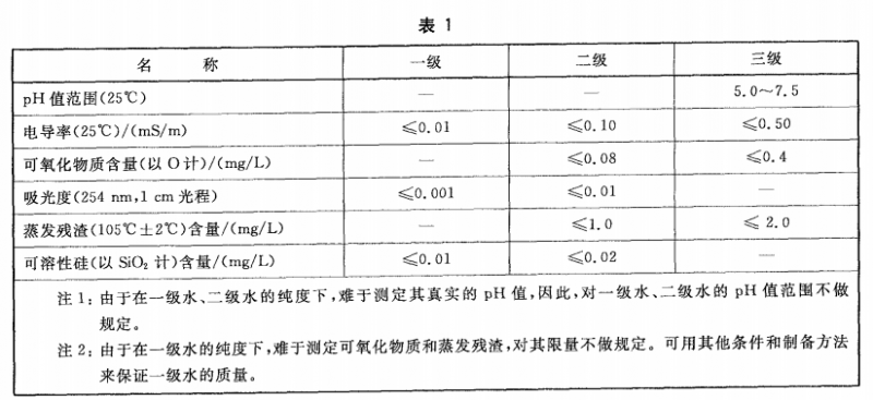分析实验室用水共分三个级别:一级水、二级水和三级水。