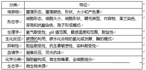 表型微生物鉴定依据表型特征的表达来区分不同微生物间的差异,是经典的微生物分类鉴定法,以微生物细胞的形态和习性表型为主要指标,通过比较微生物的菌落形态、理化特征和特征化学成分与典型微生物的差异进行鉴别。微生物分类中使用的表型特征如表2。