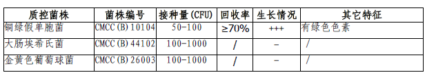 1.营养成分:铜绿假单胞菌分解蛋白质能力较强,而发酵糖类能力较低,在培养基组分中明胶胰酶水解物和甘油为铜绿假单胞菌的生长提供碳、氮源、维生素和生长因子。