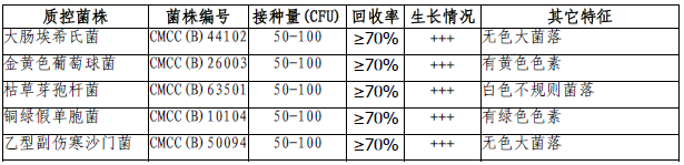 按标签用法制备培养基,接种以下质控菌株,放置30-35℃需氧培养18-24小时。