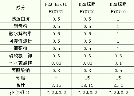 R2A也称培养基S(Medium S),由Reasoner和Geldreich开发,R2A琼脂是一种低营养培养基,用于对处理过的饮用水进行细菌学平板计数。 培养基能够让受损的和耐氯细菌恢复生长,而同时又不会被快速生长微生物所掩盖。R2A琼脂结合延长的培养时间和低培养温度(可选)可以达到这一要求,给予疲劳的微生物显著更高的回收率。