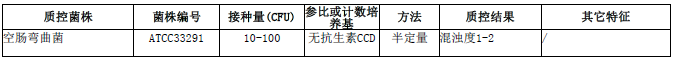 按标签用法制备培养基,接种以下质控菌株,放置42±1℃微需氧培养48±2小时。